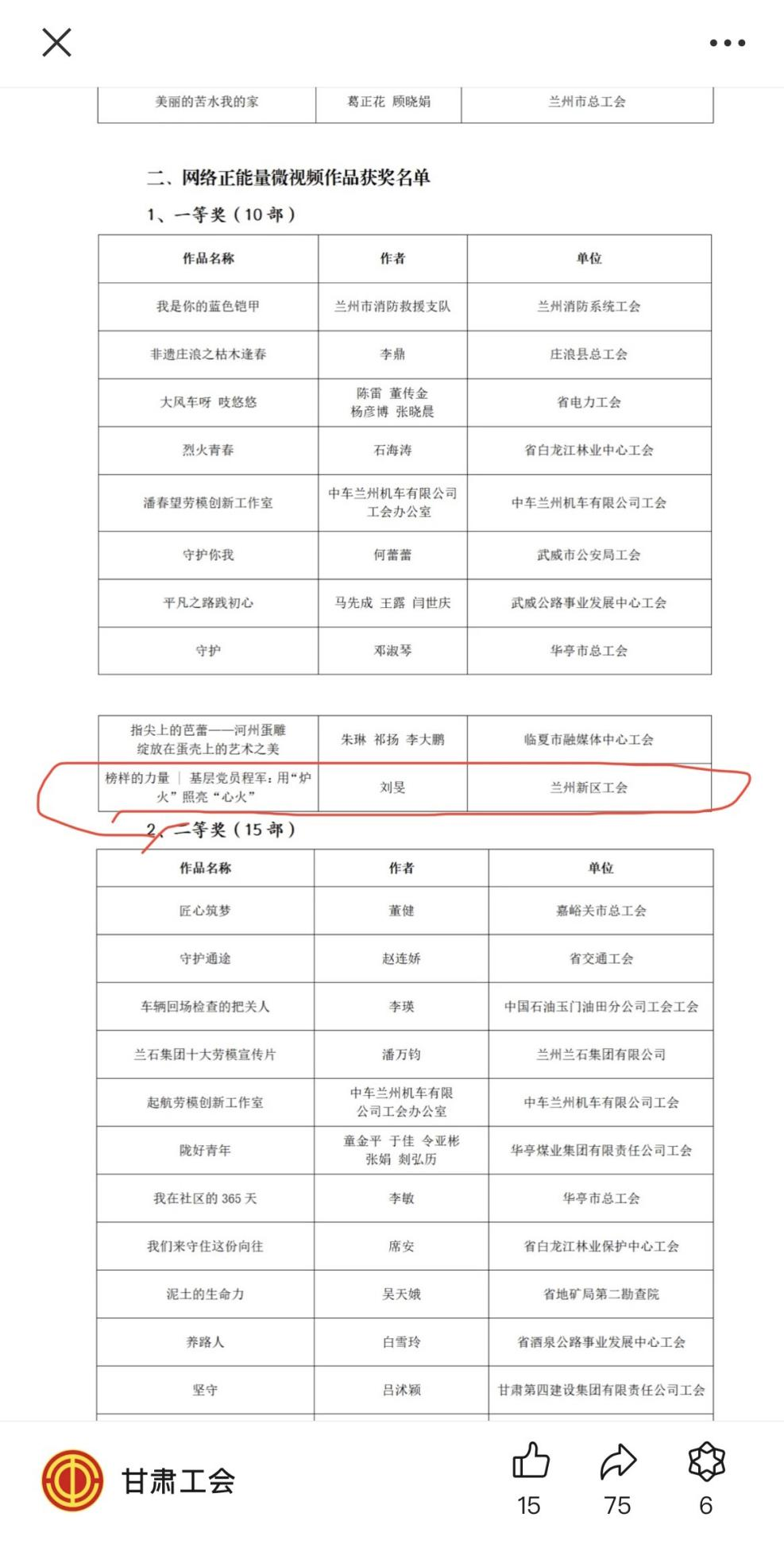 近日,甘肅省總工會(huì)和省委網(wǎng)信辦聯(lián)合開展的2024年“網(wǎng)聚職工正能量 爭(zhēng)做甘肅好網(wǎng)民”主題活動(dòng)獲獎(jiǎng)作品名單公布,由化工熱電有限公司工會(huì)主導(dǎo)拍攝,石化集團(tuán)工會(huì)監(jiān)制審核,經(jīng)蘭州新區(qū)工會(huì)推薦的視頻作品《榜樣的力量 | 基層黨員程軍:用“爐火”照亮“心火”》在甘肅省1515部?jī)?yōu)秀作品中脫穎而出,榮獲一等獎(jiǎng)。