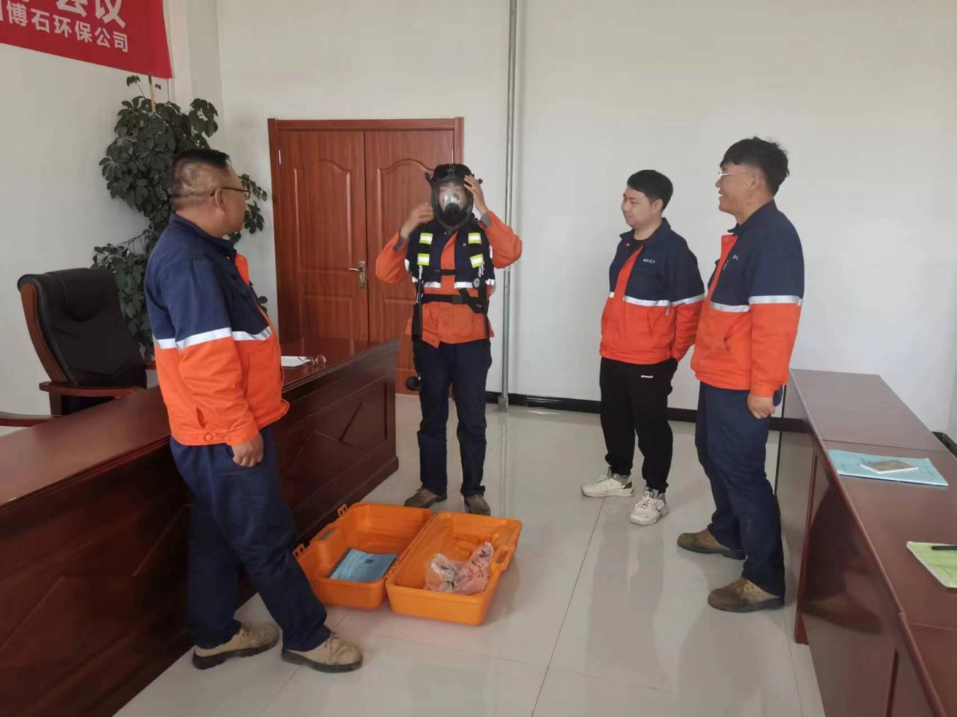 為扎實推進安全生產(chǎn)工作,進一步提高博石環(huán)保公司應急自救互救能力,不斷提升公司應急準備長效機制,結合污水處理廠檢維修工作多屬于有限空間作業(yè),發(fā)生中毒和窒息傷害較多的工作實際。2024年5月14日至21日,蘭州新區(qū)博石環(huán)保公司組織開展全員正壓式空氣呼吸器使用技能專項培訓。