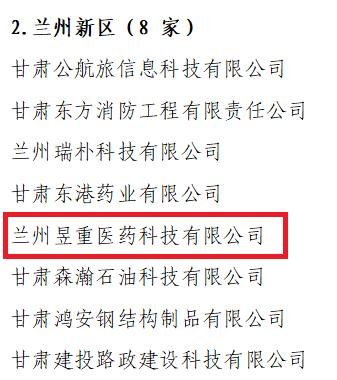 近日,省科技廳公布2022年度第二批甘肅省科技創(chuàng)新型企業(yè)名單,蘭州新區(qū)專精特新化工科技有限公司產(chǎn)業(yè)孵化器內(nèi)的入孵企業(yè)蘭州昱重醫(yī)藥科技有限公司成功上榜。此次全省共有163家企業(yè)通過(guò)認(rèn)定,其中蘭州新區(qū)8家企業(yè)。