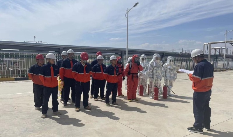 同時(shí),專精特新公司結(jié)合現(xiàn)場(chǎng)實(shí)際,演、練結(jié)合,組織參演人員熟練掌握正壓式呼吸器、防毒面罩、防化服以及隔熱服的正確佩戴和使用,具有較強(qiáng)的針對(duì)性和實(shí)戰(zhàn)性,