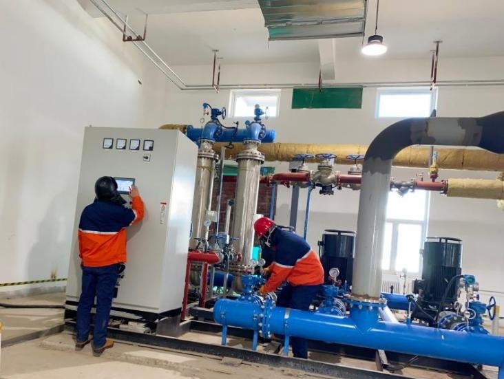 (公輔班組進行換熱機組溫度調試)
