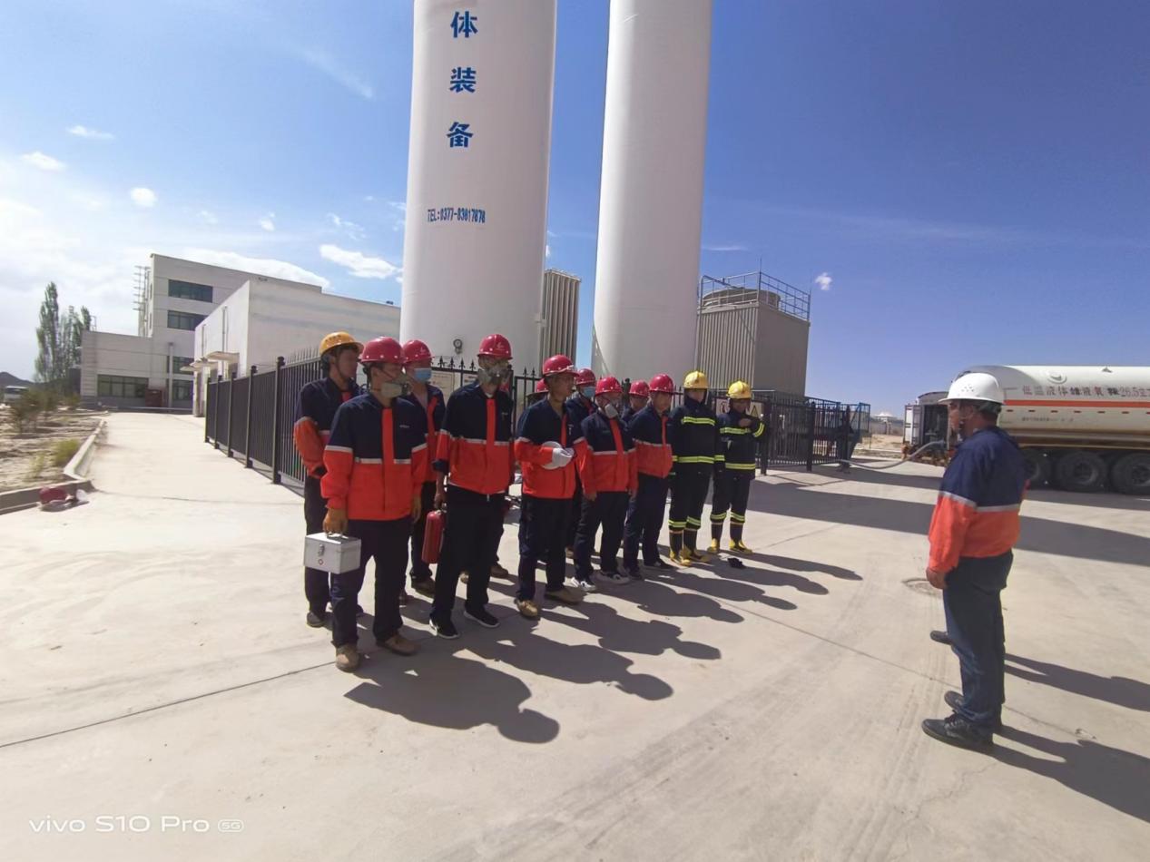 為有效預(yù)防和應(yīng)對突發(fā)事件應(yīng)急處置能力,識別資源的需求,明確相關(guān)機構(gòu)、人員的職責,進一步提升應(yīng)急響應(yīng)人員的業(yè)務(wù)素質(zhì)和能力。5月31日,博石環(huán)保公司秉承“安全第一,預(yù)防為主,綜合治理”的安全生產(chǎn)方針,結(jié)合公司實際情況,在廠區(qū)液氧罐作業(yè)區(qū)組織了液氧儲罐泄漏事故應(yīng)急救援演練。