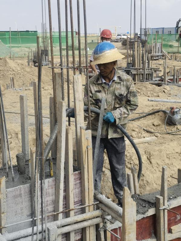 來到甘肅朗瑪旗云科技有限公司7500噸農(nóng)藥原藥及中間體項(xiàng)目建筑工地現(xiàn)場,工人們正辛勤地忙碌著,扎鋼筋、搭腳手架、搬木料、砌墻面……在一幢在建的車間施工現(xiàn)場,工人們正忙著裝模板,每顆釘子釘下去都伴隨著他們豆般大小的汗水。“我們每天早上7點(diǎn)多上班,中午11點(diǎn)多下班,中午還有一段時(shí)間午休。雖然一身都是濕透的,但是為了確保工程的進(jìn)度,我們選擇堅(jiān)守崗位?!苯ㄖと藦垘煾嫡f。
