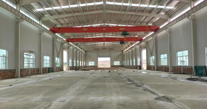根據(jù)公司戰(zhàn)略推進及業(yè)務發(fā)展需要,化學工程公司在集團公司的大力支持下設立鋼結構加工生產(chǎn)線。鋼結構加工廠房位于蘭州新區(qū)化工園區(qū)檢測檢驗及公共服務平臺項目建設基地,廠房總面積3600㎡,其中,加工車間2400㎡,噴漆車間600㎡,噴砂車間600㎡,車間內(nèi)部配置6臺10噸行車,一套鋼結構加工流水線設備,計劃年產(chǎn)量6500噸。截至目前,該廠房主體結構已完成,部分行車安裝到位,剩余行車及設備將陸續(xù)進場。
