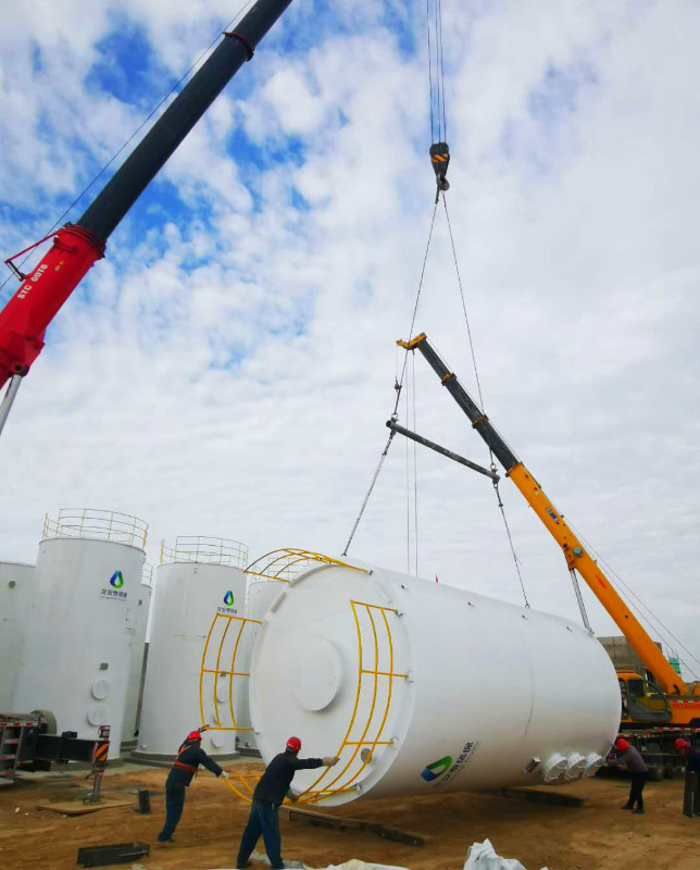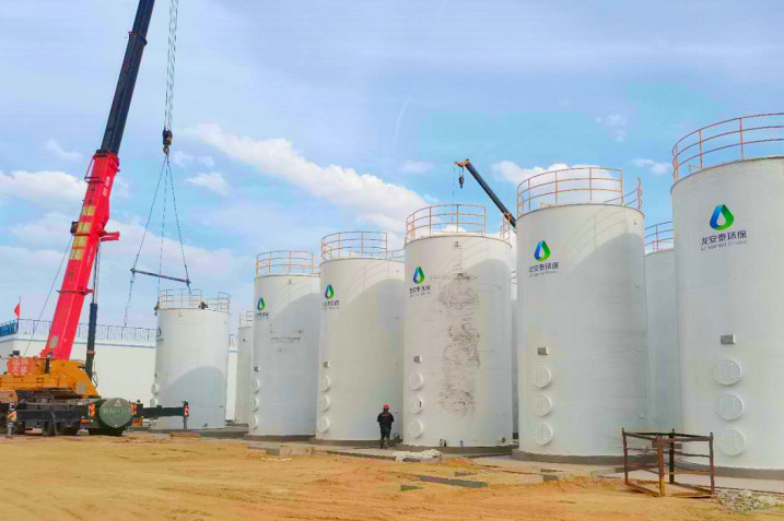 戰(zhàn)高溫 斗酷暑 促進(jìn)度 ——博石環(huán)保公司污水處理廠(一期)項(xiàng)目16臺(tái)鐵碳反應(yīng)器吊裝就位
