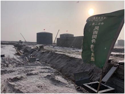 物流園貨場項目現(xiàn)場,各個儲罐、基礎(chǔ)配套設(shè)施屹立在風雪之中蔚為壯觀;印有“風雨同舟,攜手共進”的彩旗迎風飄揚;施工現(xiàn)場電焊弧光閃爍點燃著建設(shè)者的激情;施工人員手持圖紙,認真指導(dǎo)每一道施工工序。該項目蒸汽管線和地下官網(wǎng)工程建設(shè)、硝酸罐安裝工作、廊架鋼結(jié)構(gòu)預(yù)制和辦公樓內(nèi)部裝修工作均按期推進。